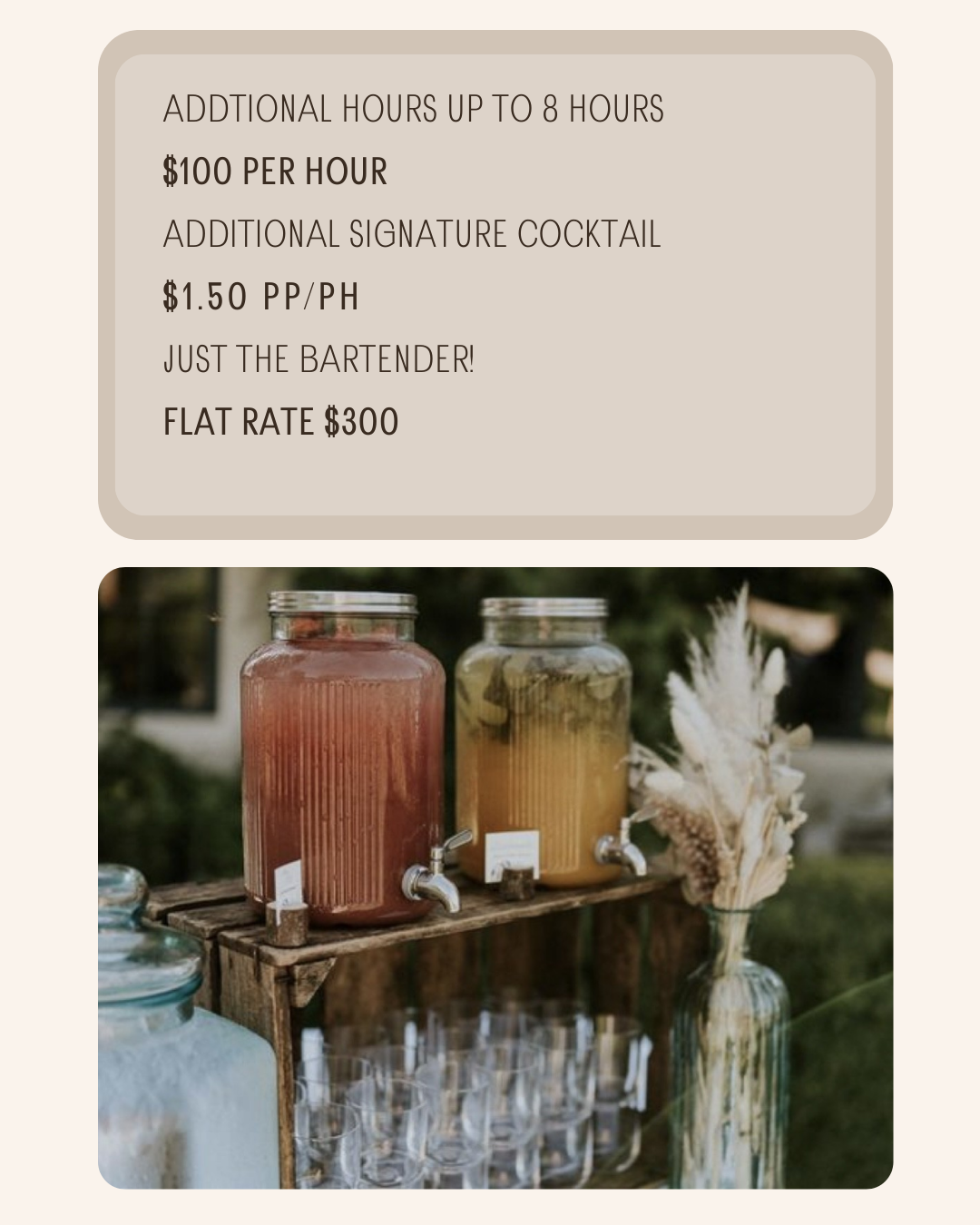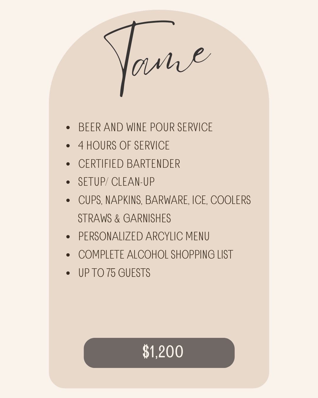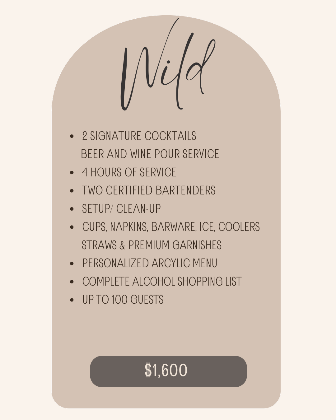 These packages serve as a guideline as we understand all events are unique! We will work with you to customize your needs.